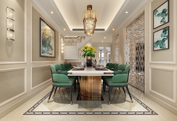整體設計以黑白灰為基調(diào),軟轉(zhuǎn)配飾色彩純度提高做對比,墻面造型以大塊面材質(zhì)區(qū)分,剔除凹凸造型的繁瑣。原始戶型客餐廳南北走向,布局優(yōu)化后在客餐廳形成了東西軸線方向,加強了客餐廳之間的聯(lián)系,為公共空間創(chuàng)造更好的互動性??臻g重組之后增加了西廚區(qū)域,作為中廚的補充。將陽臺納入客廳的部分整體考慮,讓每個空間都得到了最大程度的釋放,化解身與外物的隔閡,不下堂筵,坐窮泉壑。