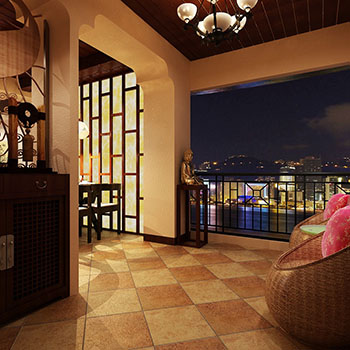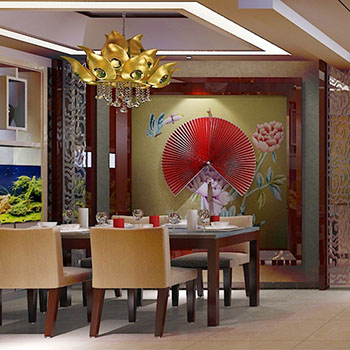 材料主要是藤條、竹子、石材、青銅和黃銅,深木色的家具,局部采用一些金色的壁紙、絲綢質(zhì)感的布料,燈光的變化體現(xiàn)了穩(wěn)重及豪華感。藤制的椅子在這里面算是最典型的元素了。藤制的一般都是浸過油或刷過木油的,怕火不怕水,在東南亞那樣的潮濕環(huán)境里面,藤制的家具是十分多的。原木質(zhì)的沙發(fā)加上白色布藝沙發(fā)墊,還有個性造型的茶幾和特殊紋理的電視背景墻,這都是十分有趣與少見的。既給人以新鮮感,又讓人眼睛一亮。餐廳內(nèi)多以家居配飾來填充整個空間,深顏色柜子和桌椅,裝飾性藝術(shù)品為空間添加些許靈動感,避免長時間給人帶來壓抑感。配合適當?shù)拿朗皆O(shè)計,更加顯得自由,穩(wěn)重。