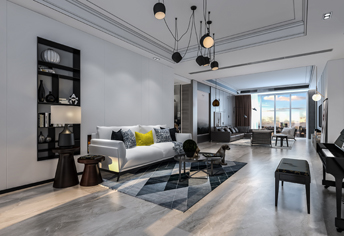 本案業(yè)主較為年輕,喜歡時(shí)尚元素,討厭太繁復(fù)的設(shè)計(jì)感覺。所以整個(gè)空間從局部到整體處處體現(xiàn)著年輕與活力,時(shí)尚與簡約,用最浪漫鮮活的藝術(shù)表達(dá)著現(xiàn)代都市的美學(xué)態(tài)度。設(shè)計(jì)師用白色、原木色貫穿整個(gè)空間,高級的冰川藍(lán)與跳躍的檸檬黃則悄然將一室的活力與靈氣點(diǎn)染開來。本案位于二樓,明朗的淺色指揮著光線無限停駐。開放式廚房及半開放式的書房,不動(dòng)聲色的滿足都市時(shí)尚生活??蛷d和餐廳之間的異型門套,拒絕枯燥賦予空間流動(dòng)感。如置身斯德哥爾摩的橋邊輕聲細(xì)語,訴說著浸入時(shí)光與自然故事。