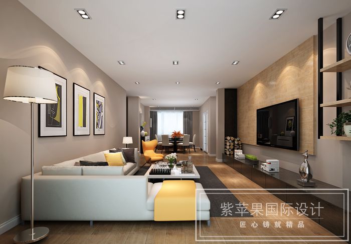 簡潔明快又不單調的設計風格,營造出溫馨、典雅、舒適、莊重的室內設計效果。主要用材質的質感變化,簡潔明快的線條造型,配以燈光的修飾,這樣的結合就飽滿了空間。