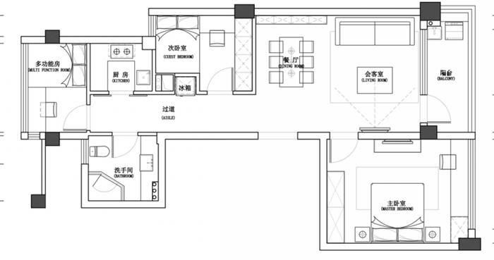 缺點:主臥儲物功能一般,外部儲藏空間欠缺,動靜區(qū)分不明確,需做改動增加空間功能性。