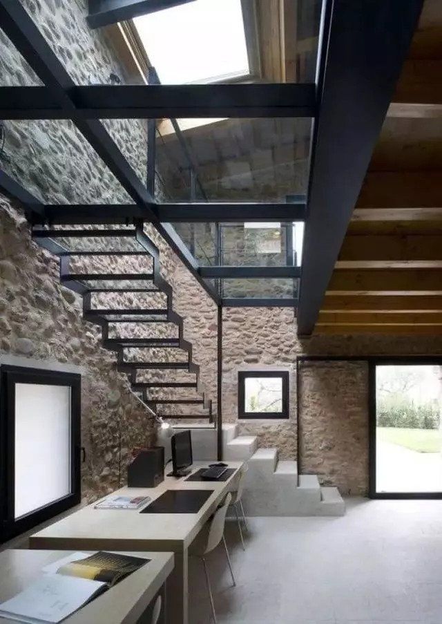 一般像S形的設(shè)計就是既節(jié)約空間又能達(dá)到設(shè)計感的要求,這樣的樓梯在家裝和工裝中也時獨(dú)得恩寵。