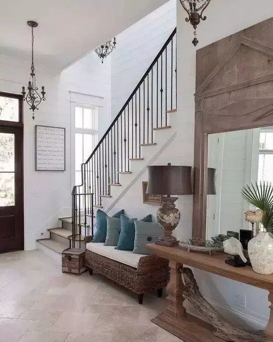 比如木質(zhì)的樓梯噪音大,鐵質(zhì)的扶手冰涼, 拋棄兩者的缺點,把優(yōu)點結(jié)合起來,就是很好的組合。其他還有木質(zhì)跟玻璃、大理石跟玻璃等。