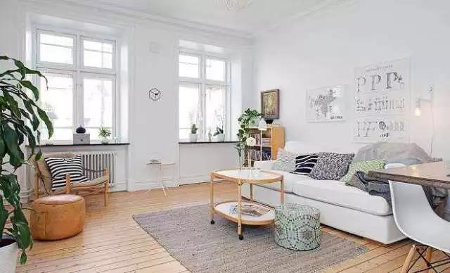 北歐家居主要以黑白灰純色為主,配以高明亮的色彩點(diǎn)綴,手工編織飾品、大葉綠植等的加入,整個家居空間靈動自然。