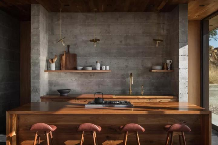 「裸感」設(shè)計沒有一定的成規(guī),但并不是無章可循。它往往采用原木、水泥、石材等天然材質(zhì)注入空間,為居者營造出放松自在的空間感受。這些材質(zhì)大多呈現(xiàn)素面朝天的特點,展露原始的光澤、斑點或紋理,自然逼真、不事雕琢,讓天然的美完整地體現(xiàn)出來。