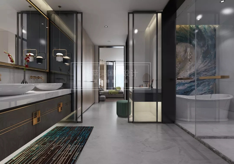 除了是睡覺的地方,設(shè)計(jì)師建議最好另外增加更衣室區(qū)域,回歸各自功能需求,記得考慮通風(fēng)與采光。主臥與陽(yáng)臺(tái)之間的玻璃隔斷設(shè)計(jì),阻隔視線不完全的破壞隱私性,還能增加光線接觸區(qū)域。