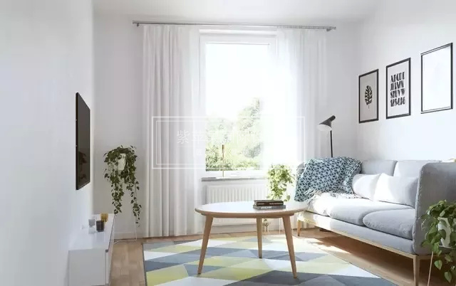 上至天花板、下至地板的窗簾自帶延伸效果,視覺上制造了一種更大的空間感,給人感覺就是你家真大的錯覺。
