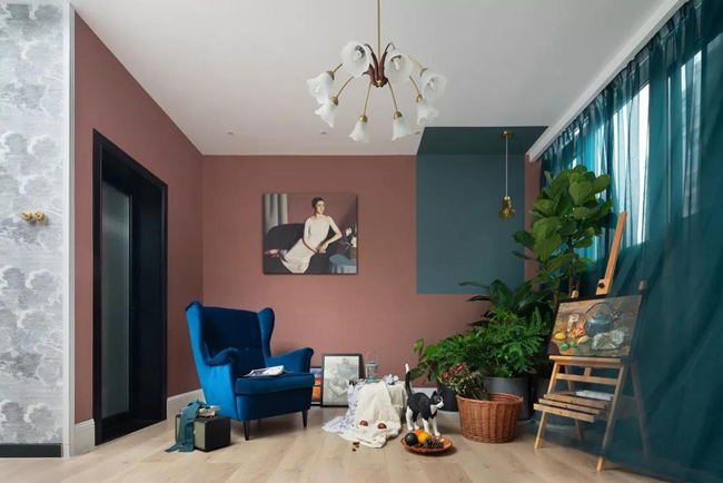 粉色的墻面和溫暖燈芯絨質(zhì)感,柔軟的線條和斑駁搖曳的光影,讓空間在無形中醞釀了一種悠然、平靜的情緒。