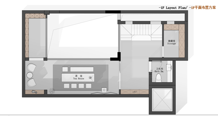 -1F:茶室,衛(wèi)生間,儲藏室【61.5㎡】