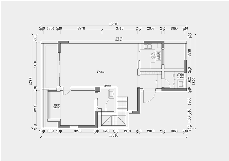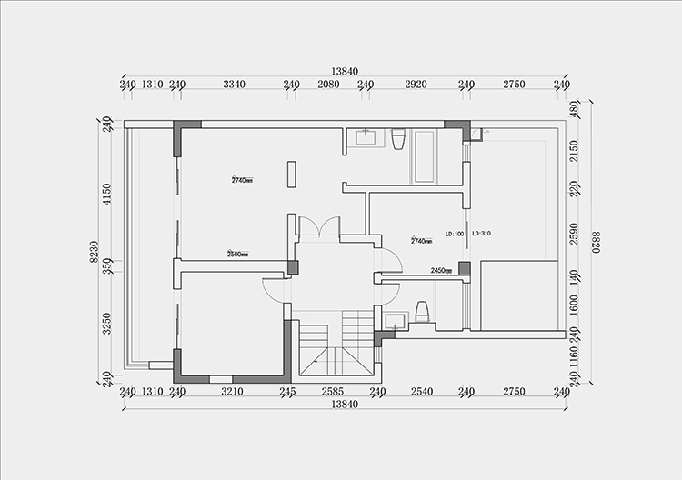 這個客戶想要全部砸掉重新裝,想裝個電梯直接上三樓,二樓打算給女兒住,希望電梯不要經(jīng)過二樓生活區(qū)。
