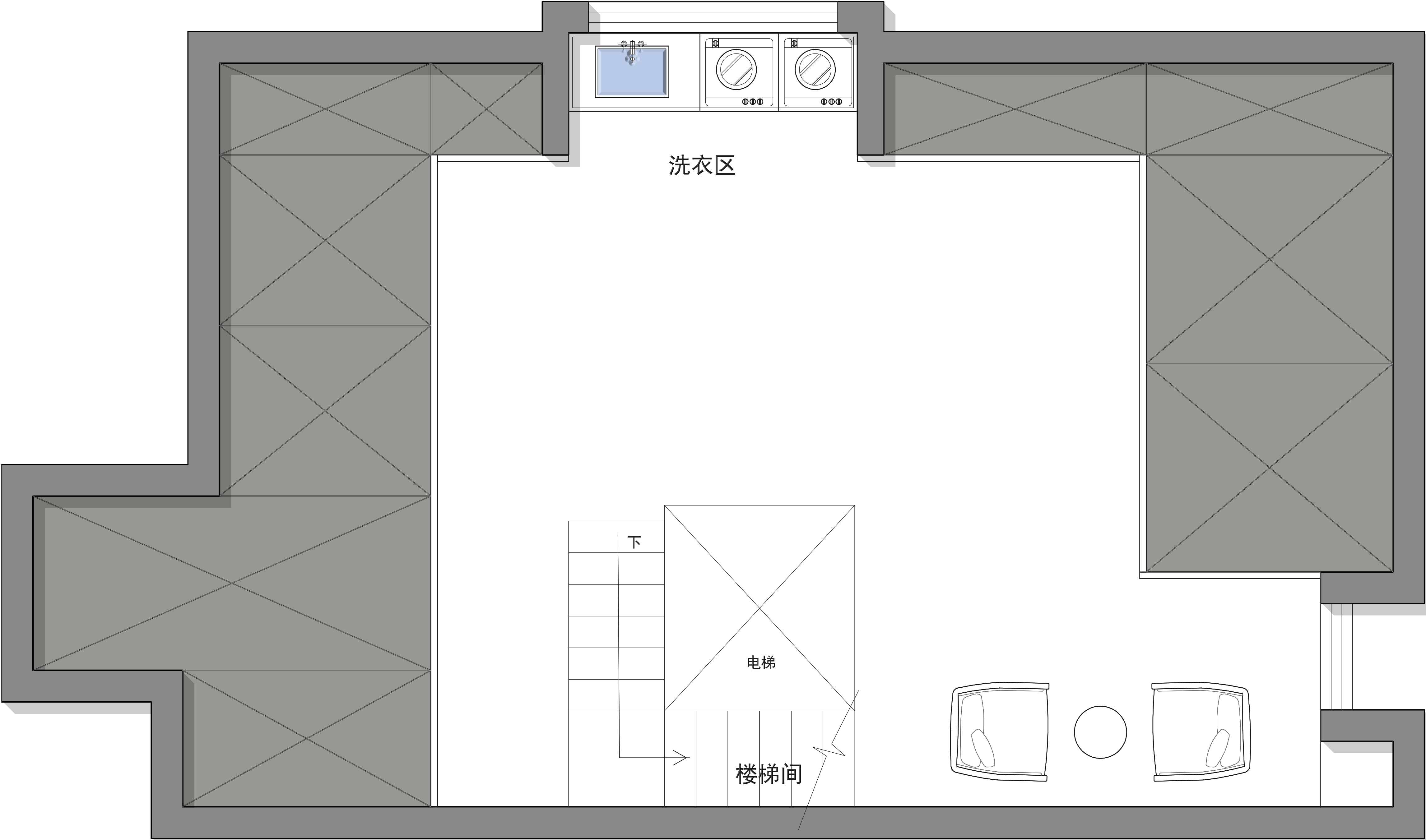因?yàn)榧依镉欣先撕⒆樱覀冊(cè)谠蓟A(chǔ)上改變了樓梯位置,設(shè)置了電梯方便老人小孩上下樓!
