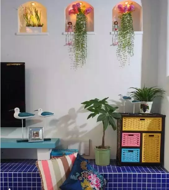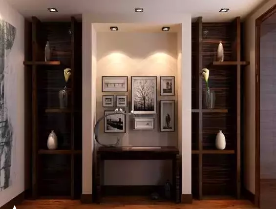 2. 掛上架子來創(chuàng)造空間的錯覺:掛上長型的層架,使狹窄的空間顯得比較寬闊。