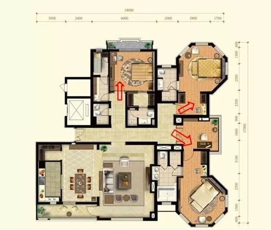 好的動線能夠提升戶型利用率,而差的動線會使大戶型變得“大而無當”,浪費空間。戶內(nèi)主要動線有三類,分別是居住動線、家務(wù)動線、來客動線。