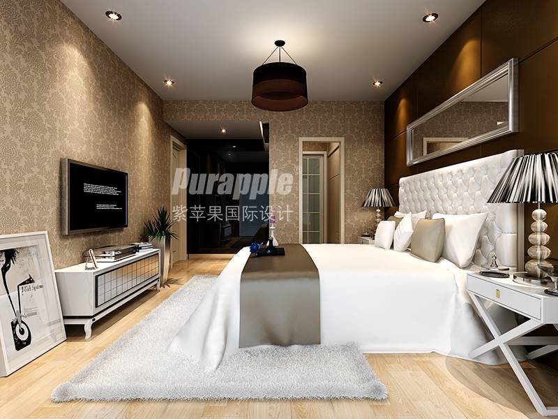 轉(zhuǎn)眼就到臥室,我們發(fā)現(xiàn)這里的軟裝設(shè)計就比較有國際范了,軟裝設(shè)計師的靈感來源于中國古代宮廷的床榻,之后又添加了一點現(xiàn)代時尚的元素。