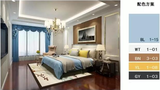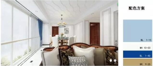 設(shè)計(jì)師使用2017年流行色進(jìn)行裝點(diǎn),寶石藍(lán)、湖藍(lán)、黃棕等高質(zhì)感色彩點(diǎn)綴運(yùn)用。