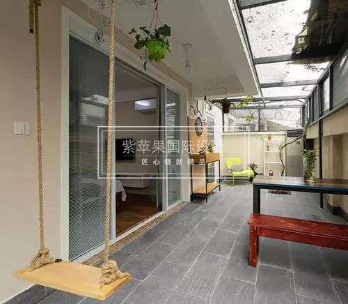 露臺用玻璃封起來,也算是一個簡單的戶外游樂園了。