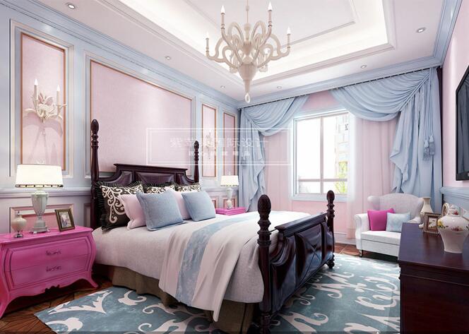 漫步到主臥的瞬間,濃濃的少女粉迎面而來,初戀般的感覺涌上心頭,看那粉色和藍色的對比色不失穩(wěn)重,更凸顯了高貴。也更是體現(xiàn)了男主和女主人之間的甜蜜愛情,天長地久。