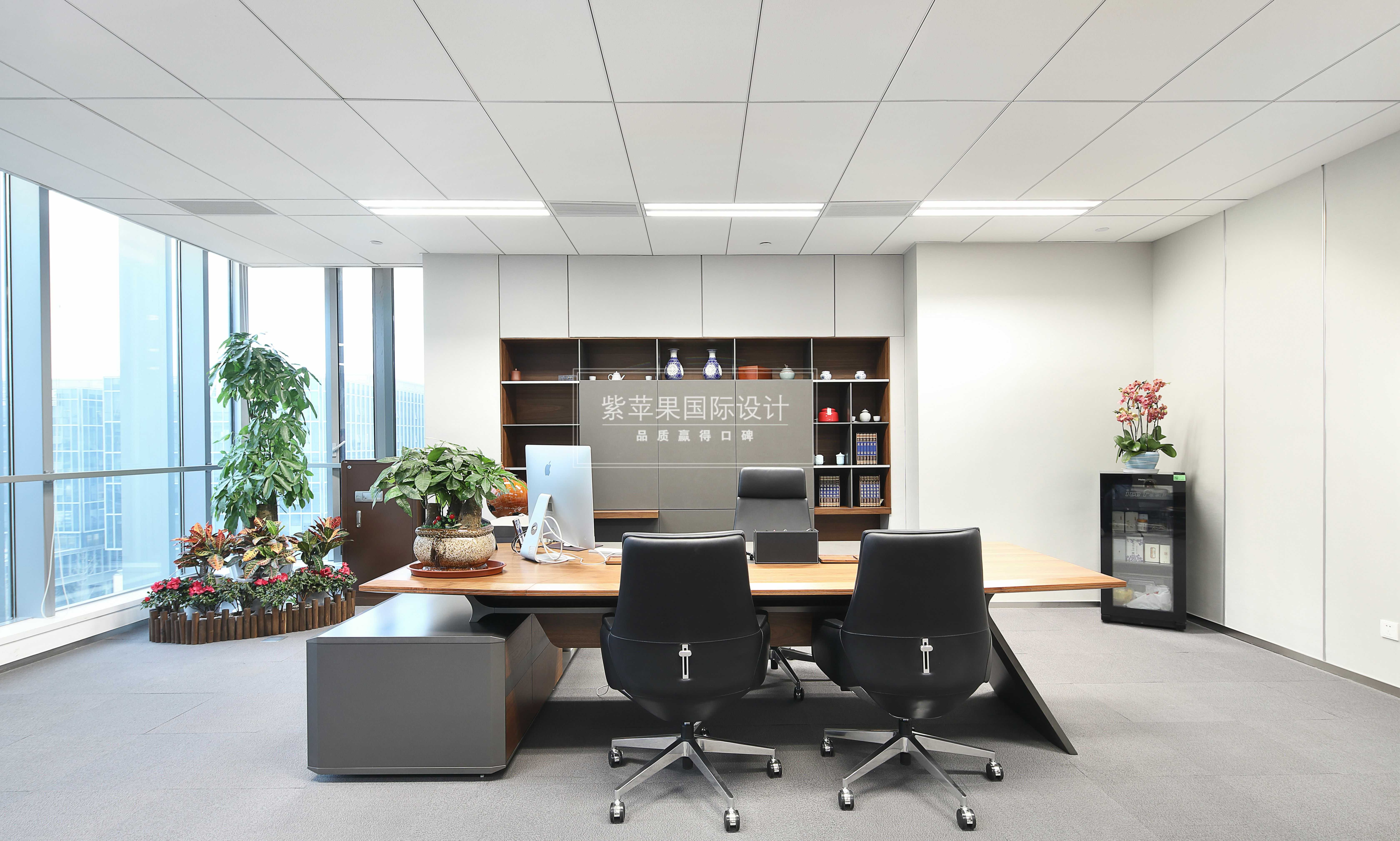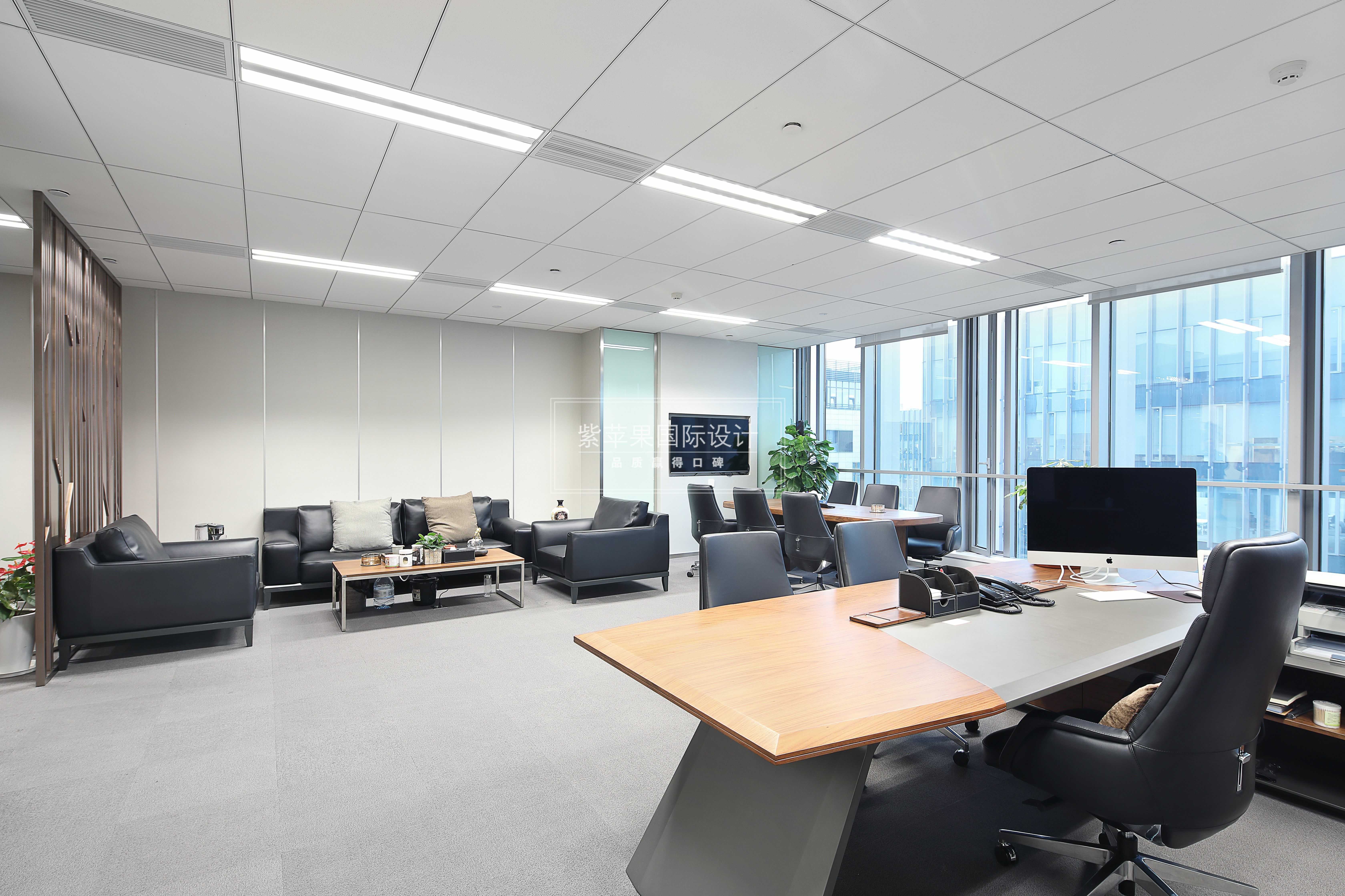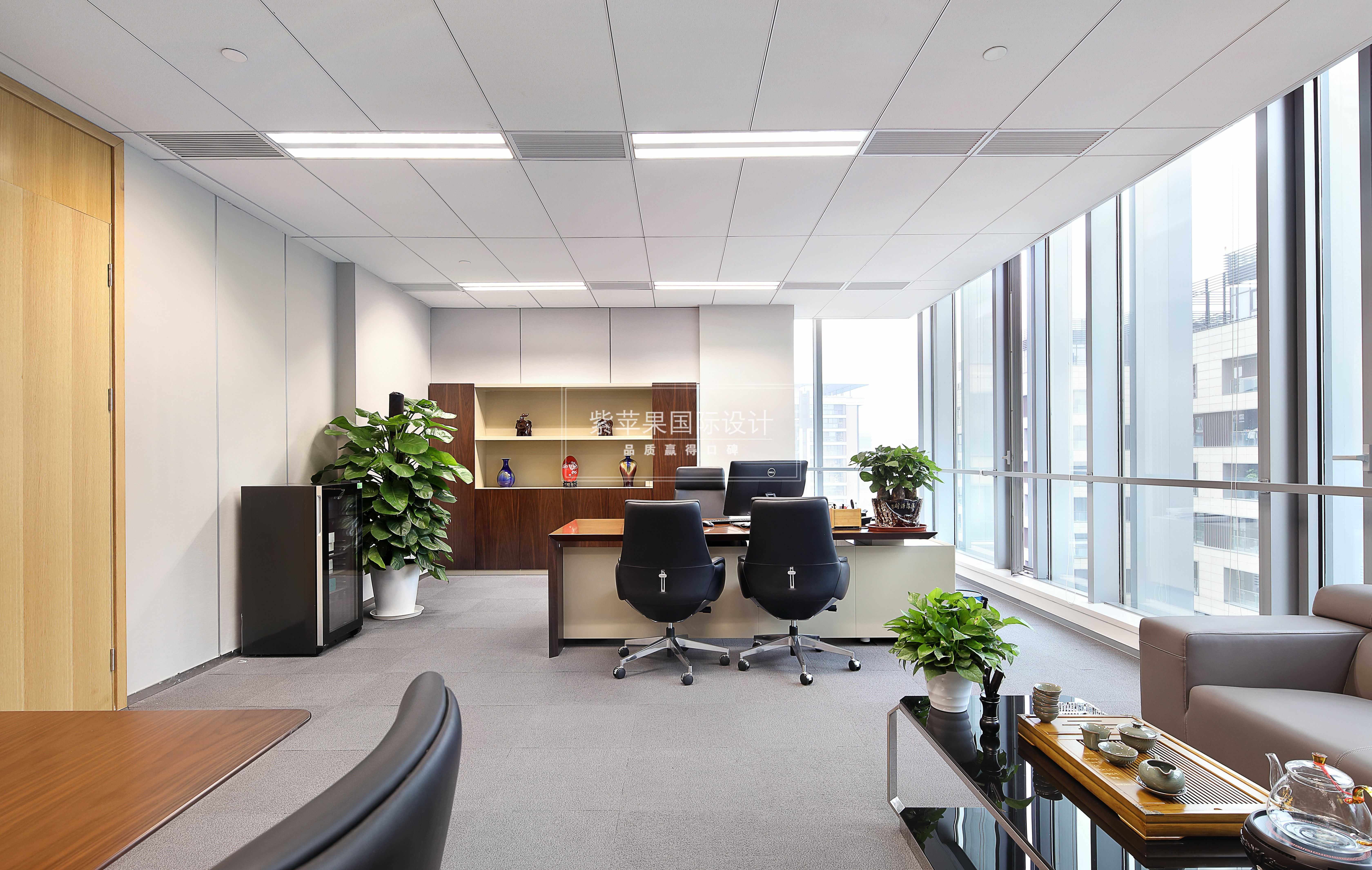 中高層領(lǐng)導(dǎo)的辦公室預(yù)留在大廈兩側(cè)靠窗的位置,光線充足視野開闊,簡單的陳設(shè)、足夠的儲物空間及交談空間,一切從簡高效有序。