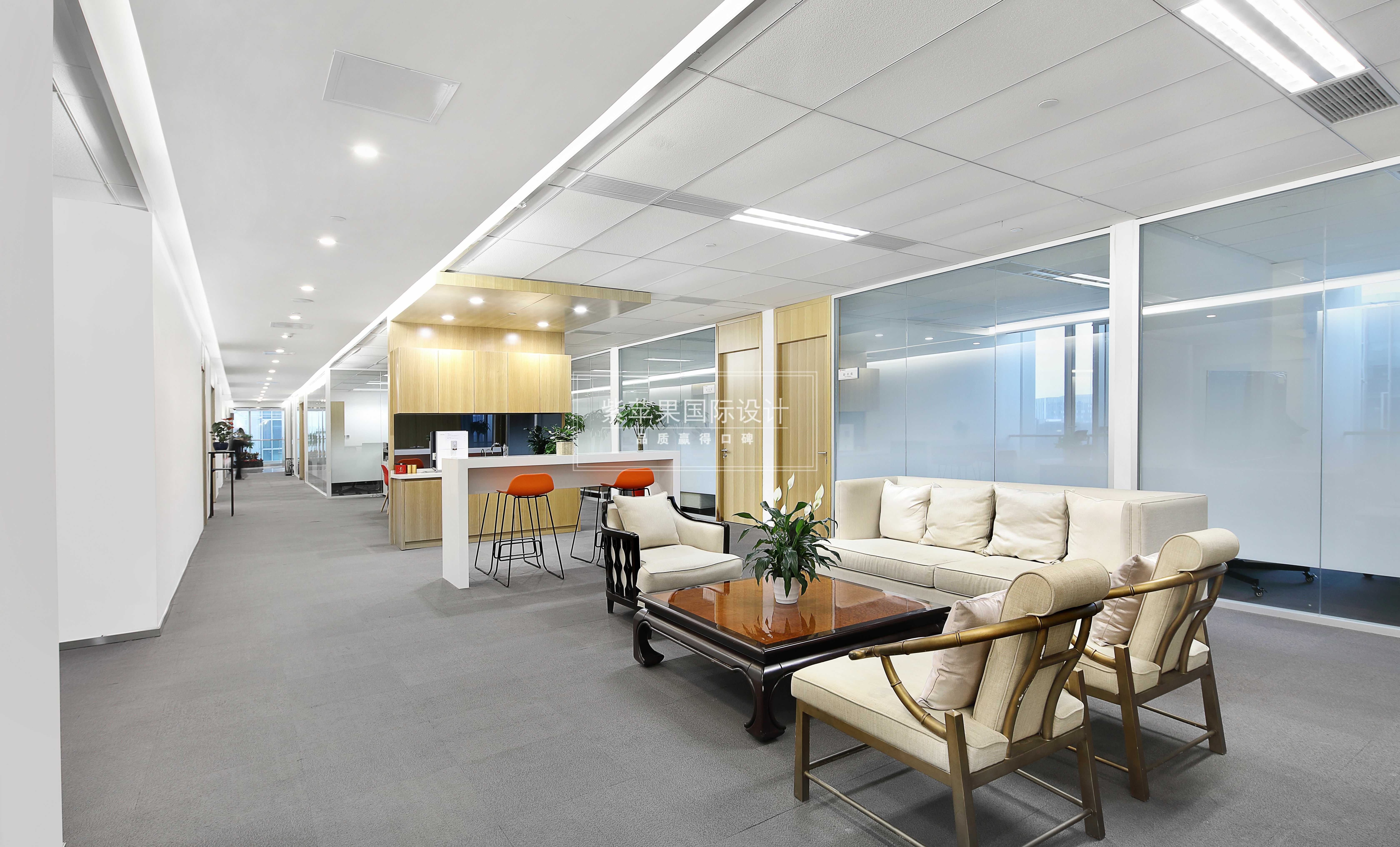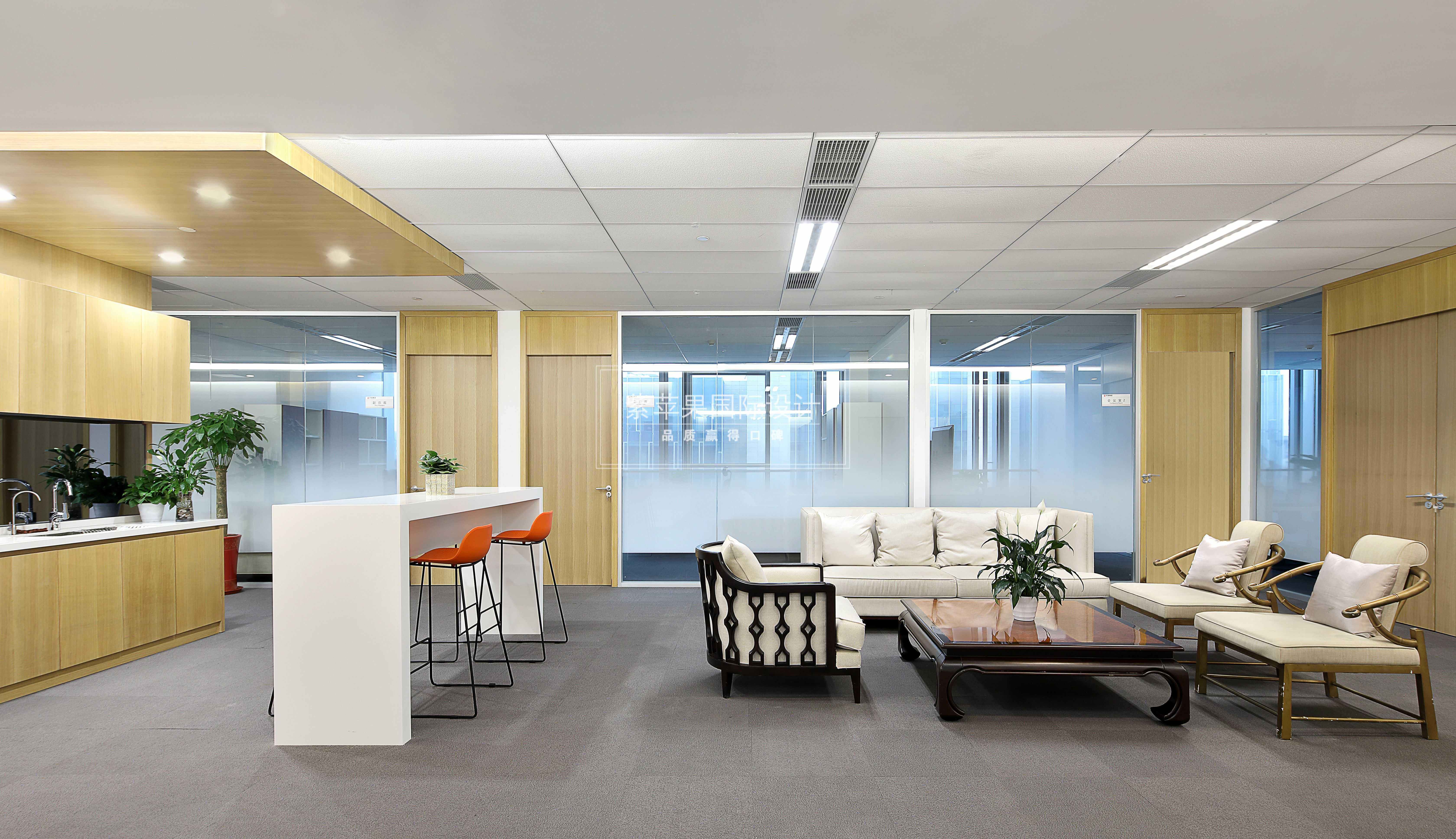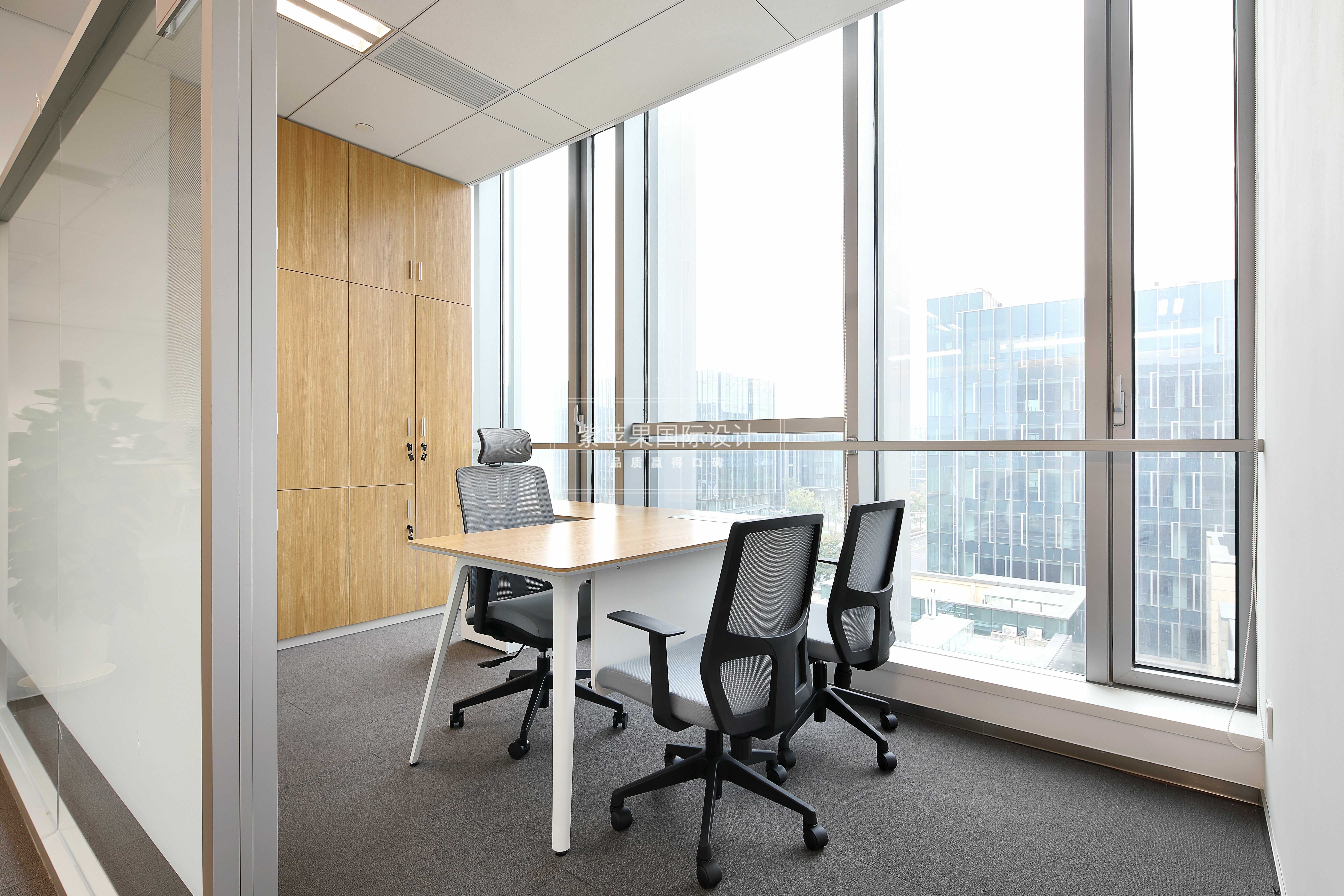 中高層領(lǐng)導(dǎo)的辦公室預(yù)留在大廈兩側(cè)靠窗的位置,光線充足視野開闊,簡單的陳設(shè)、足夠的儲物空間及交談空間,一切從簡高效有序。