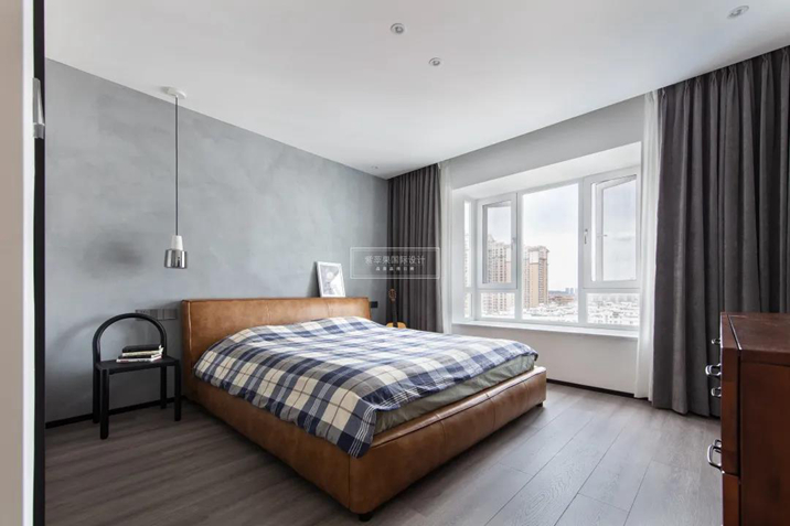 入眼的皮革軟包床為空間注入活力